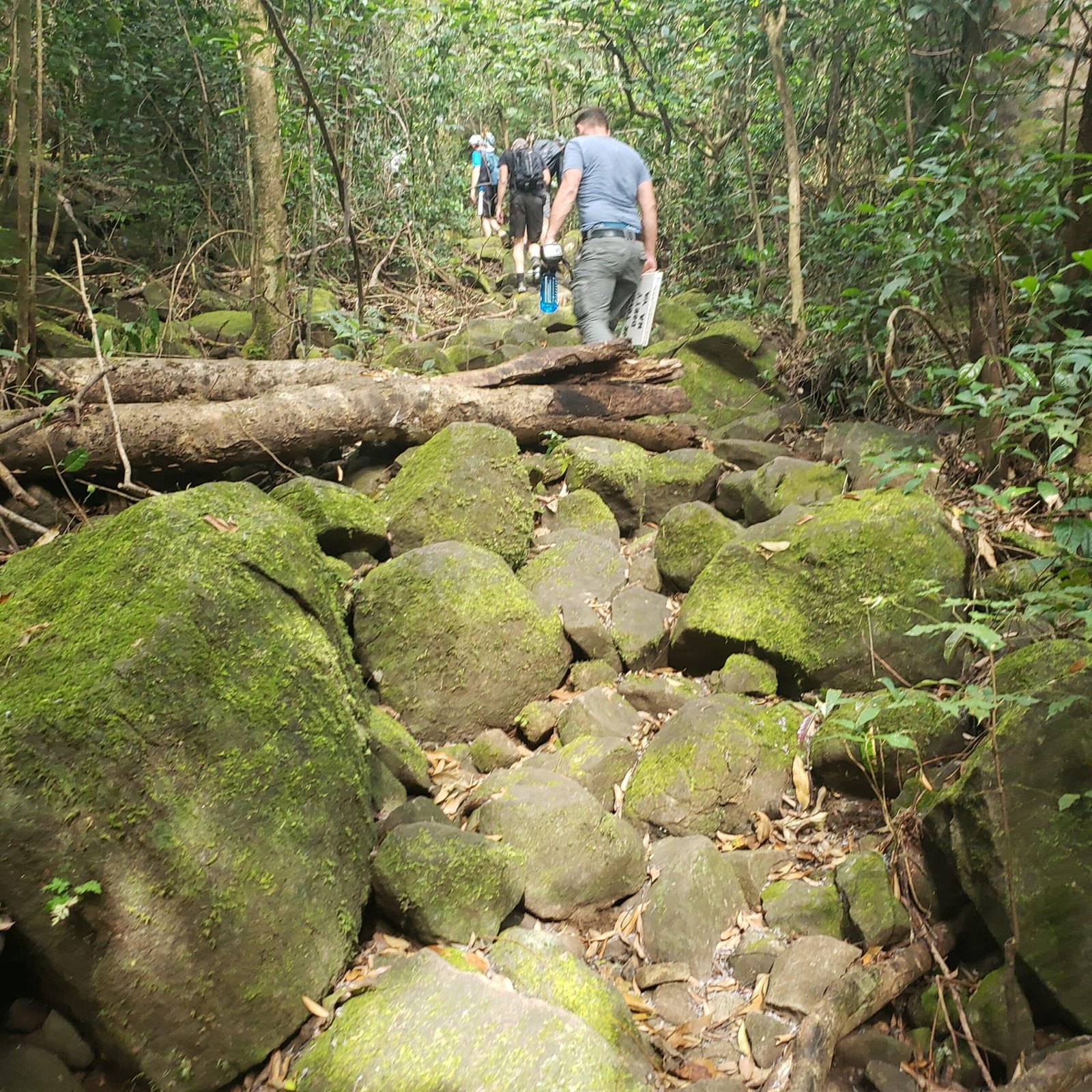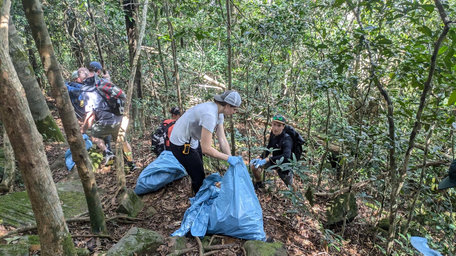 To make a very minor dent in the pollution, on one of our days off, a group of us climbed Sugarloaf Mountain and collected trash. Sugarloaf is the tallest peak, at 708 meters, around Freetown. It is a popular destination. There really isn’t much of a marked trail up the mountain. Occasionally, there might be a small piece of fabric tied to a tree. There are no trash receptacles along the way and unfortunately, people just drop their trash on the mountain side.