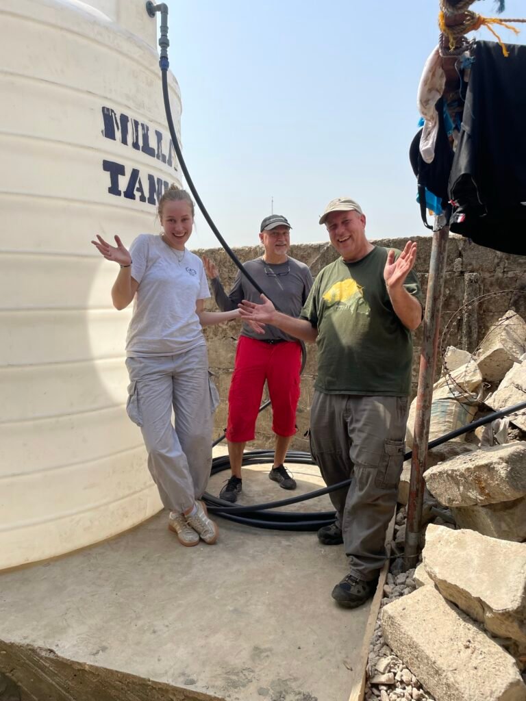 Besides doing our regular jobs, many of the crew members take on or join special projects. I averaged a full day off about every three weeks so it wasn’t often that I could volunteer on these projects. On one of my earliest days off, I joined a group who had been working on a new water supply and storage for the Aberdeen Women’s Hospital. This was a hospital that Mercy Ships helped establish during a field service a decade earlier. In the section on pollution, I describe further the need for these storage tanks.